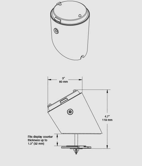 | Chiều cao | 4.7in (119mm) tính từ bề mặt |